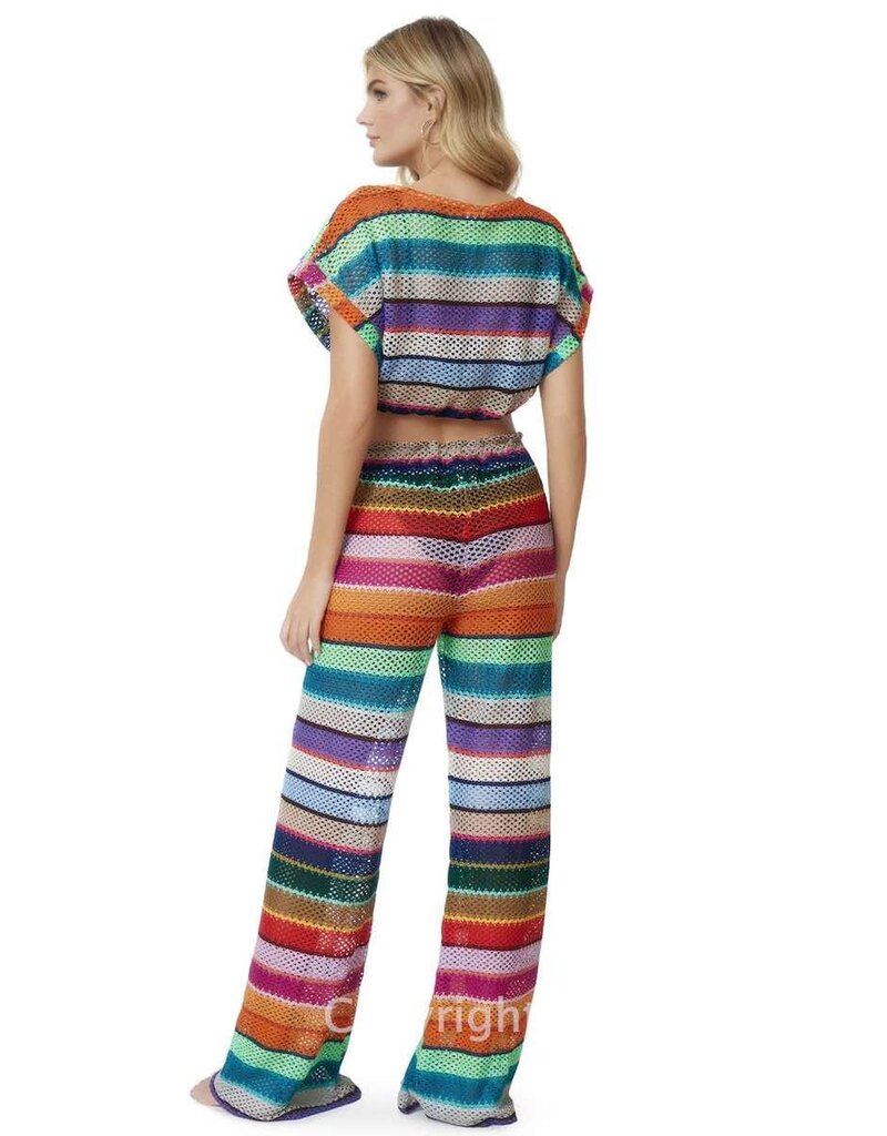 Calypso multi stripe crochet drawstring waist cover up pants94% Polyester, 6% ElastaneHand wash coldModel is wearing size xs/sModel is 5’9”