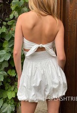 Off white bubble hem tie back strapless mini dress100% CottonHand wash coldModel is wearing size smallModel is 5’10”