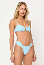 Tourmaline blue eco rib ruched side bitsy coverage bikini bottom