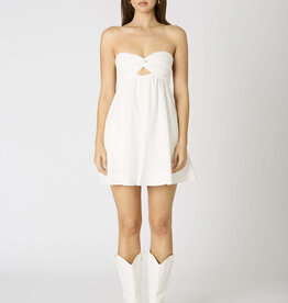 Light blue contrast satin neckline a-line off the shoulder mini dress with soft mold around bust